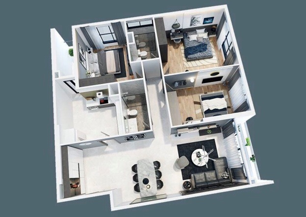 - 2 Các mẫu thiết kế căn hộ chung cư 80m2 3 phòng ngủ đẹp, ấn tượng