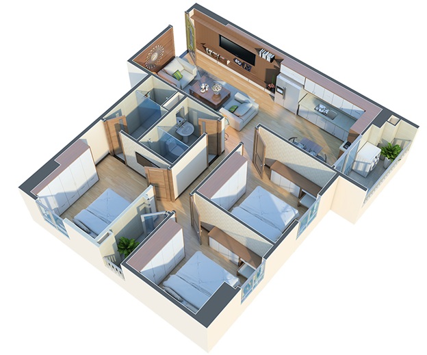 Các mẫu thiết kế căn hộ chung cư 80m2 3 phòng ngủ đẹp, ấn tượng