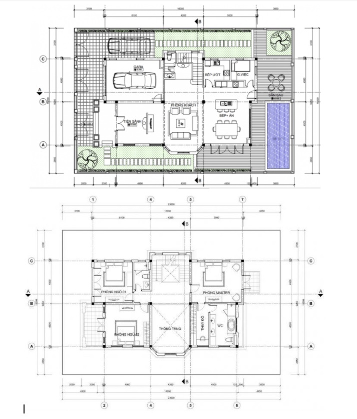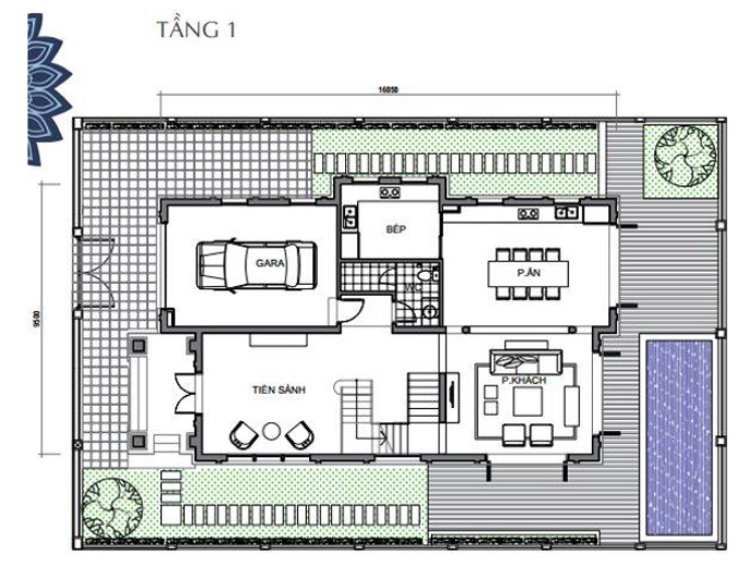 Bản vẽ thiết kế biệt thự đơn lập tiểu khu hướng dương tầng 1