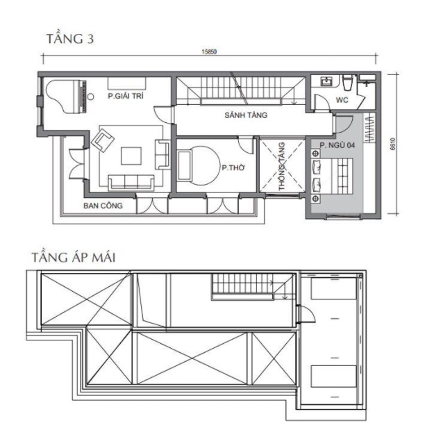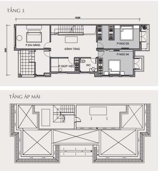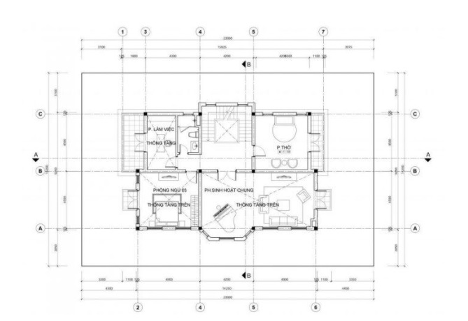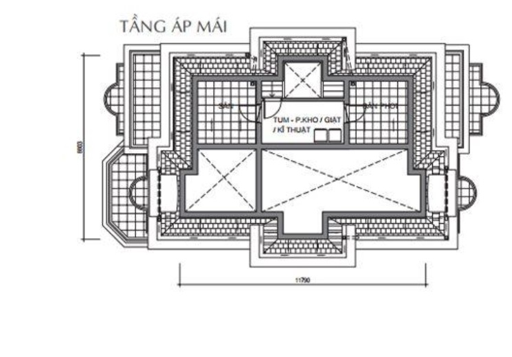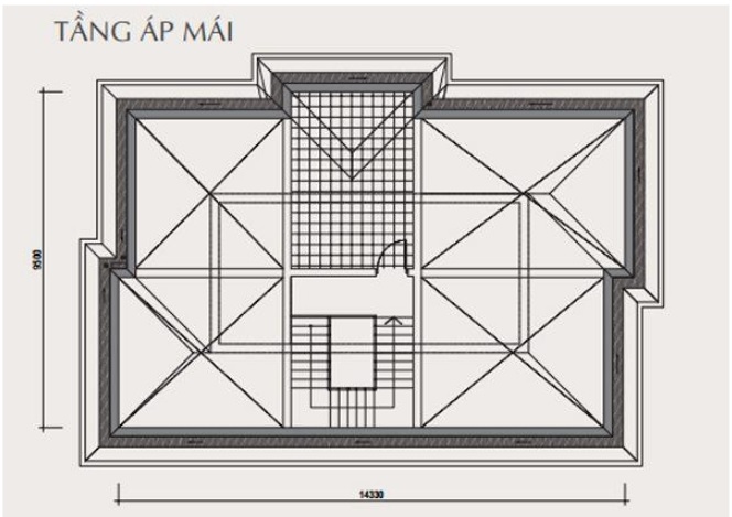 Bản vẽ thiết kế biệt thự đơn lập tiểu khu hướng dương tầng áp mái
