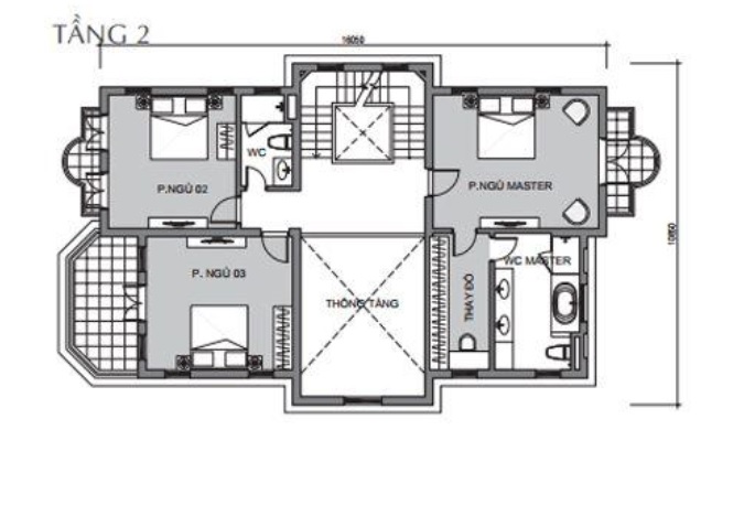 Bản vẽ thiết kế biệt thự đơn lập tiểu khu hướng dương tầng 2