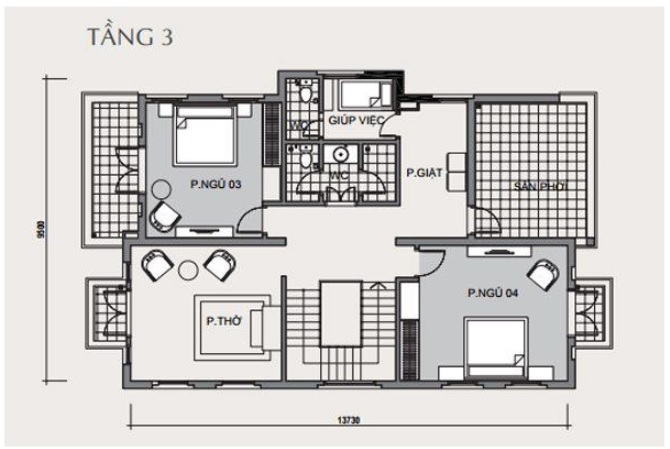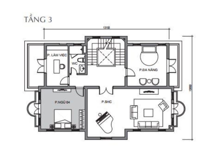 Bản vẽ thiết kế biệt thự đơn lập tiểu khu hướng dương tầng 3