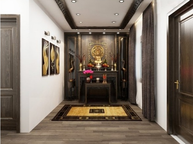 Tuy nhiên đối với căn hộ chung cư thì bạn không nên sử dụng 1 phòng riêng để bố trí và làm phòng thờ như vậy sẽ rất bị tốn không gian cũng như diện tích, hơn nữa trần của nhà chung cư thường cũng sẽ không đủ cao, không gian không đủ thuận lợi để có thể lưu thông không khí tốt từ ngoài vào trong nhà.