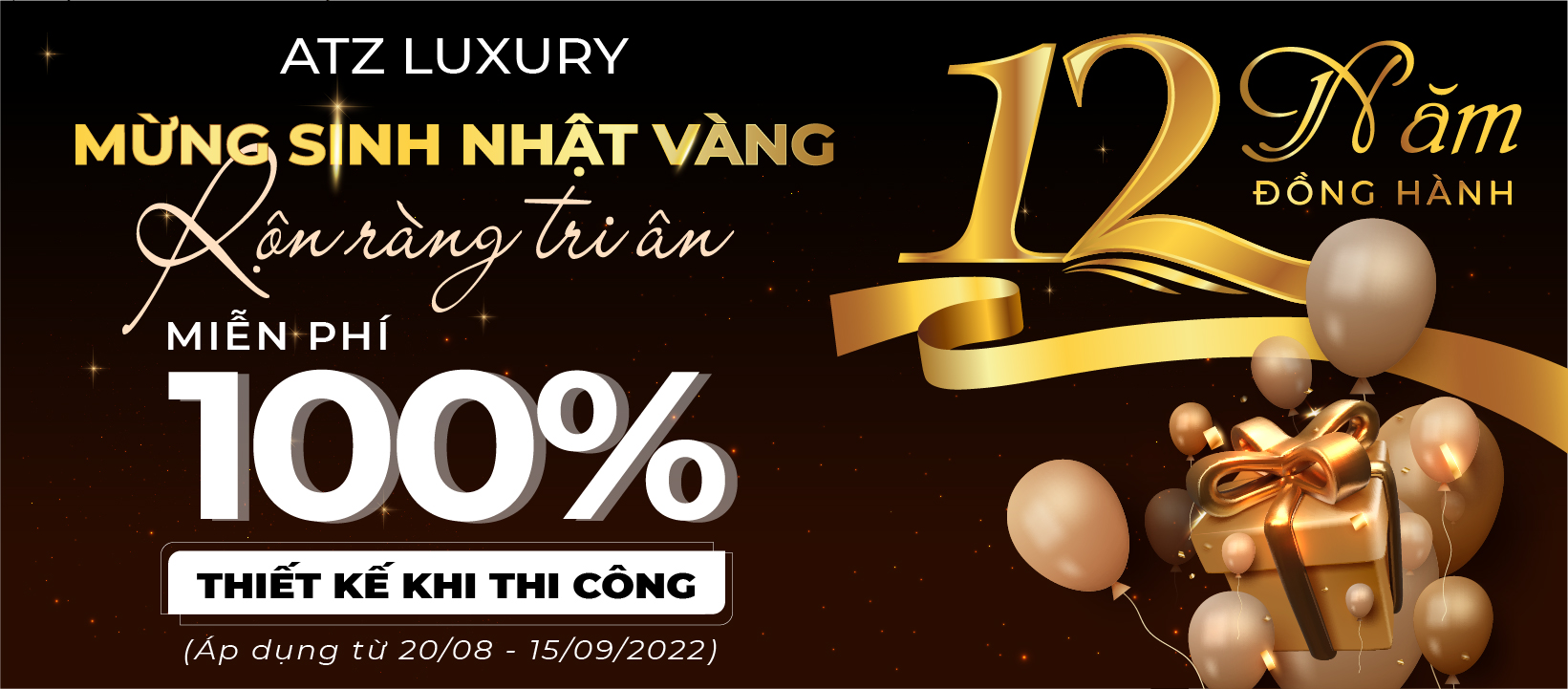 Nhân dịp kỷ niệm 12 năm thành lập công ty cổ phần thương mại kiến trúc nội thất ATZ (5/9/2010 – 5/9/2022) ATZLUXURY thực hiện chương trình bán hàng để tri ấn khách hàng đã, đang và sẽ sử dụng dịch vụ của chúng tôi.