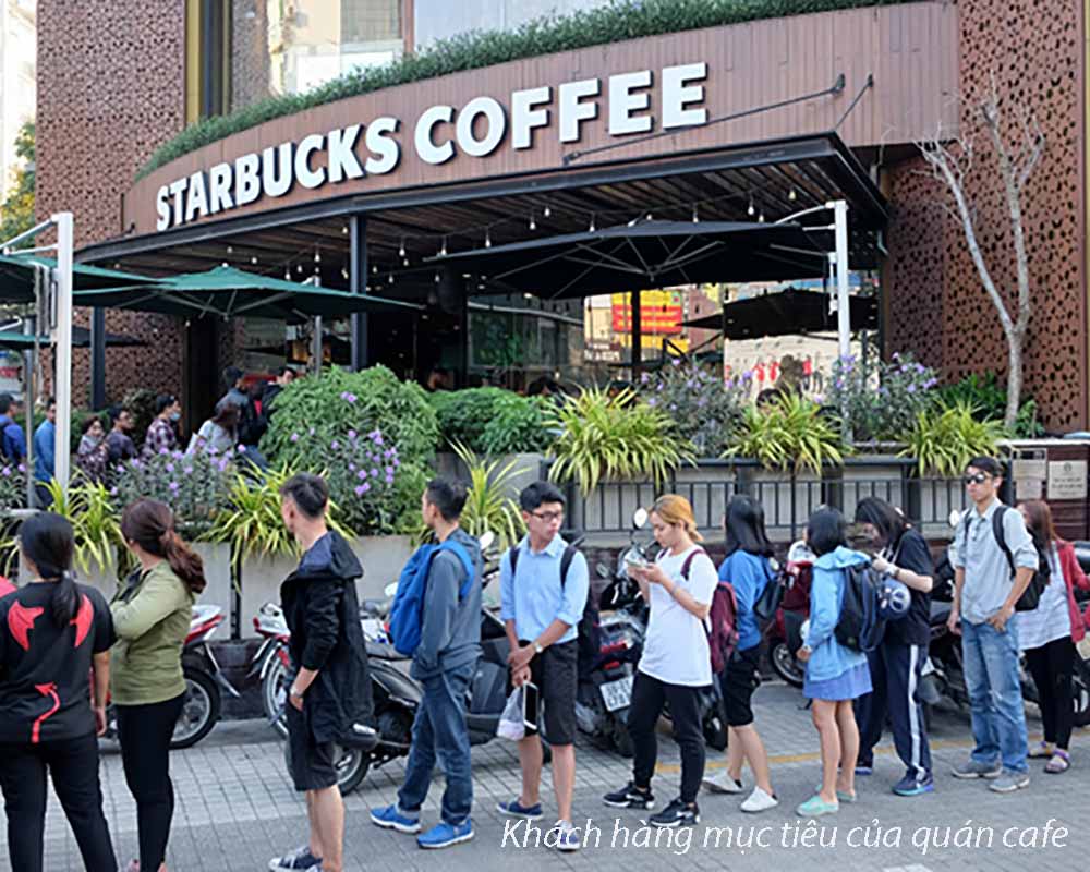 Khách hàng mục tiêu của quán cafe chính là nhóm đối tượng khách hàng có chung sở thích, độ tuổi, đam mê và nhu cầu sử dụng dịch vụ đồ uống cafe. Chẳng hạn như: học sinh, sinh viên, nhân viên văn phòng, người lao động thu nhập thấp hay nhóm khách hàng thích sống in sống ảo.
