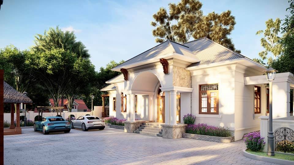 Mẫu thiết kế biệt thự nhà vườn 1 tầng 3 phòng ngủ hiện nay khá được ưa chuộng, bài viết này ATZ LUXURY sẽ giới thiệu đến bạn đọc mẫu kiến trúc biệt thự 1 tầng 3 phòng ngủ cho chị Nga tại TP Vinh. Nghệ An.
