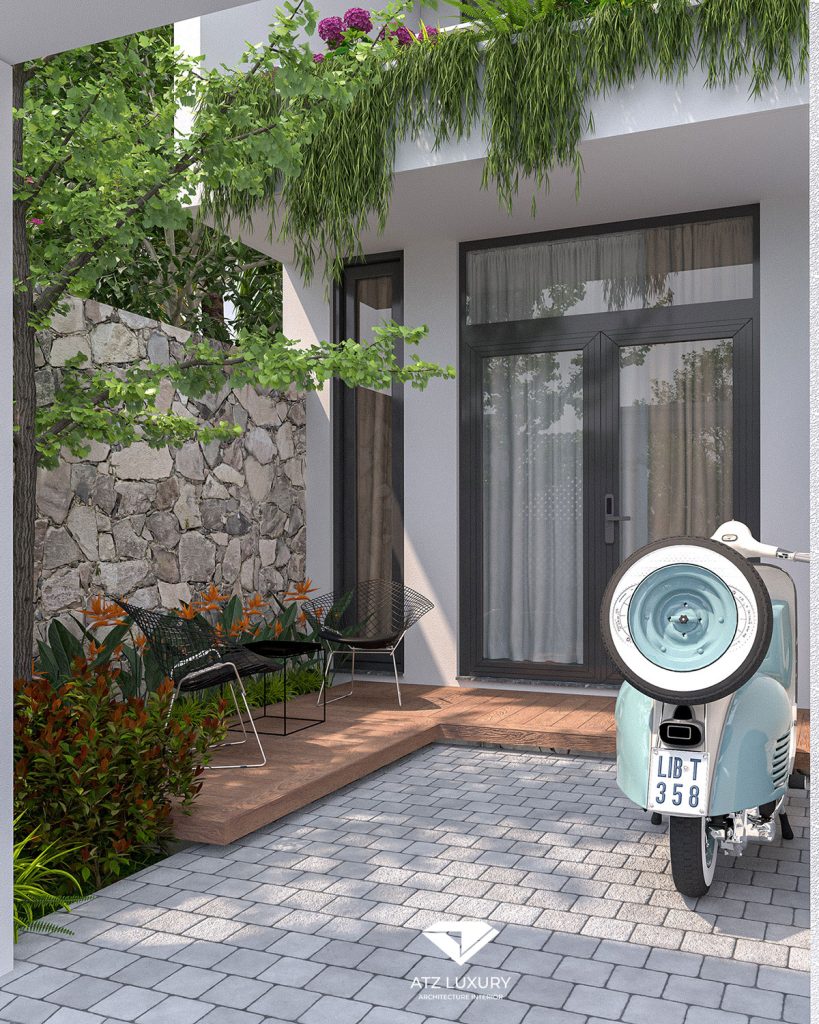 Với hệ thống trước sân nhà, ATZ thiết kế khu vực để trồng cây xanh lớn, thu được bóng mát rộng để khoảng sân ngay dưới bóng râm sẽ là khoảng để gia đình thư giãn sau những ngày căng thẳng, vừa bước chân về nhà có thể cảm nhận ngay không khí trong lành, mát mẻ, xua tan đi những nóng bức ngày hè hoặc nhiệt độ quá cao giúp giải nhiệt độ của phố thị.