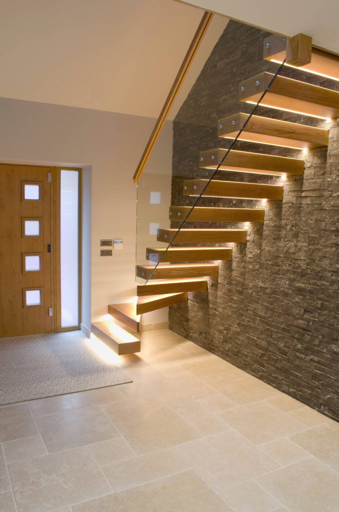 Mẫu 10: Bố trí ánh sáng có chủ đích sẽ giúp cầu thang trở nên rất lãng mạn. Bạn đừng bỏ qua gợi ý này nhé.