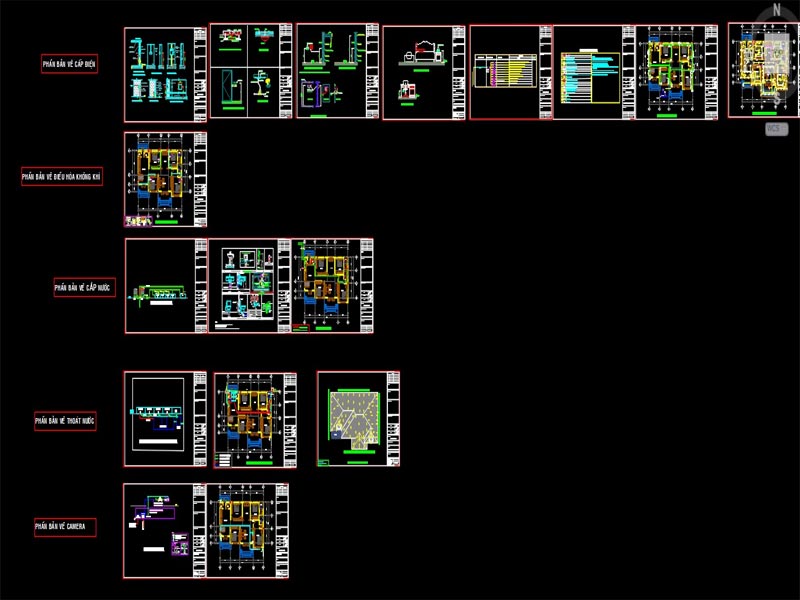 - Hệ thống phụ trợ: Bản vẽ điều hòa không khí và hệ thống camera an ninh.