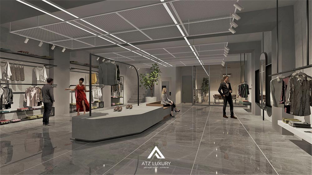 Mẫu thiết kế showroom thời trang 4 tầng 500m2 SR06. ATZ LUXURY là công ty chuyên thiết kế và thi công showroom theo yêu cầu. Nếu bạn có nhu cầu hãy liên hệ chúng tôi để được tư vấn nhé!