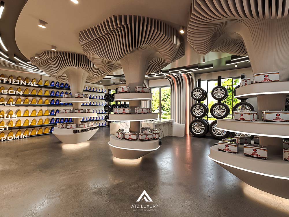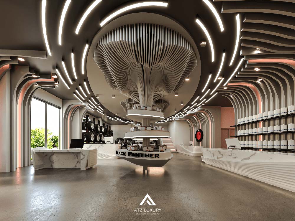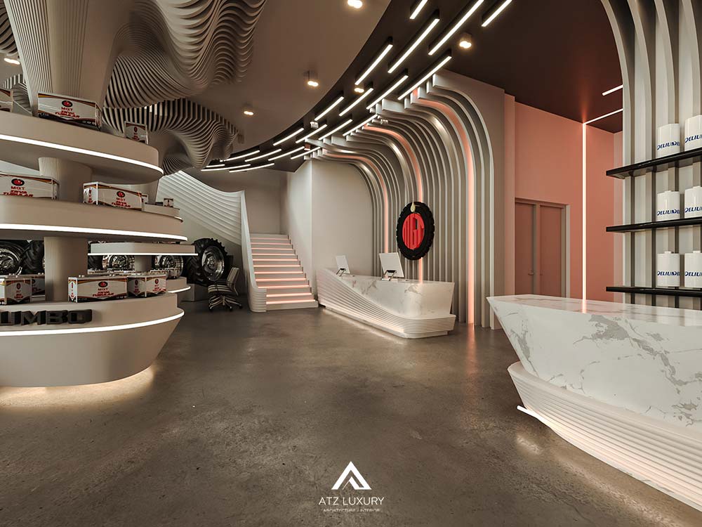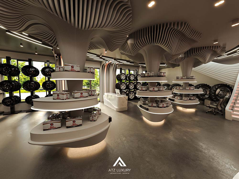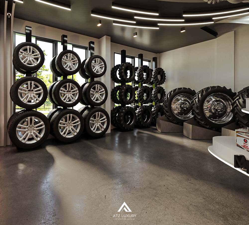 Tham khảo mẫu thiết kế showroom trưng bày lốp xe ô tô 250m2 SR05. ATZ LUXURY là đơn vị thiết kế thi công nội thất showroom uy tín tại Việt Nam. Nếu bạn có nhu cầu hãy liên hệ chúng tôi để được tư vấn nhé!