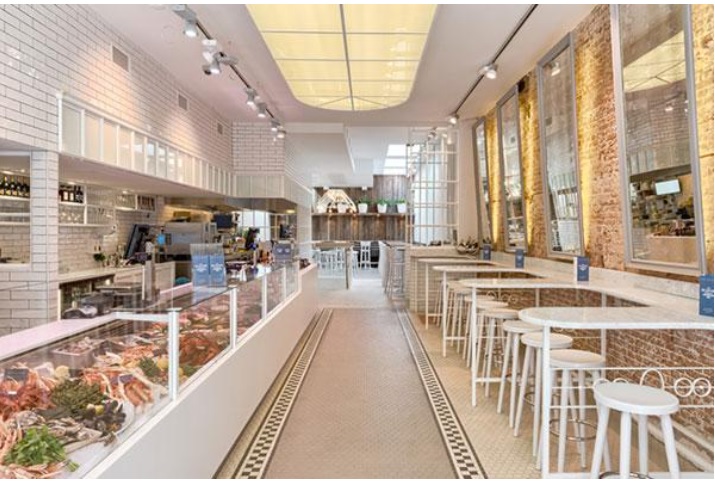 1.6. Thiết kế cửa hàng hải sản với tone màu trắng chủ đạo
