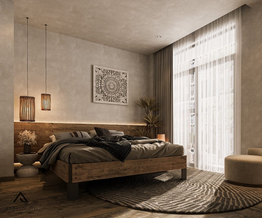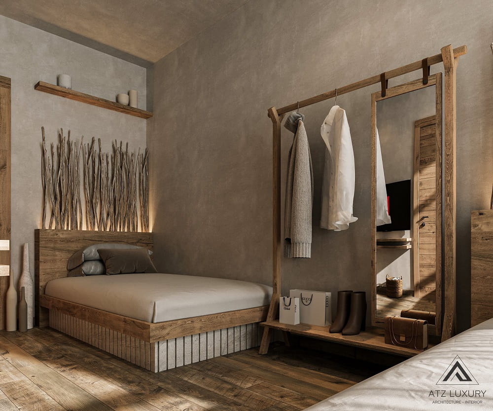 Mẫu thiết kế nội thất homestay thứ nhất tận dụng chủ yếu chất liệu gỗ và lấy cảm hứng từ thiên nhiên để mang vào không gian nội thất. Mỗi chi tiết nội thất đều được KTS của ATZ LUXURY tinh tế lựa chọn và thiết kế cẩn thận, từ việc chọn lựa nội thất đến sắp xếp màu sắc và bố trí.