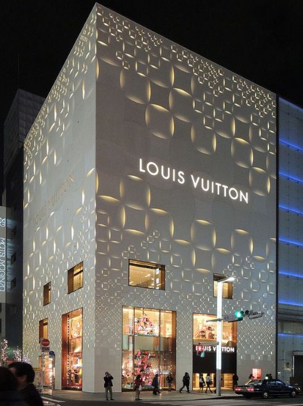 Kiểu thiết kế mặt tiền chiếu sáng mặt dựng facade lighting cực sang trọng và rực rỡ bằng hệ thống đèn điện giúp cửa hàng cực lấp lánh và nổi bật về đêm. Mẫu thiết kế mặt tiền này có chi phí đầu tư rất đắt đỏ nên thường chỉ có những showroom thời trang lớn, các trung tâm thương mại áp dụng