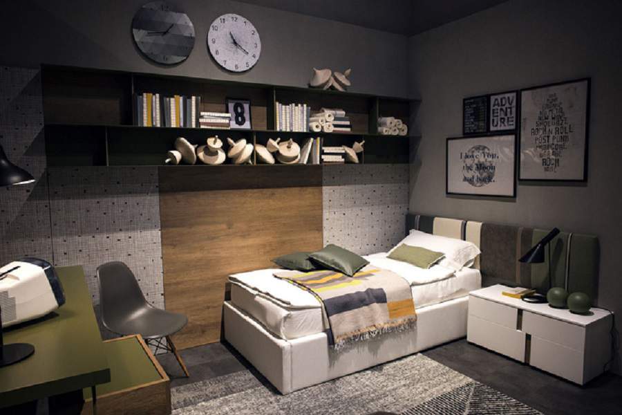 Lắp một chiếc giường ngủ dạng ngăn kéo dưới sẽ giúp căn phòng của bạn trở nên gọn gàng và tiện lợi hơn. Ngăn sách, bàn học, gạch lát sàn sử dụng chất liệu gỗ, tạo cảm giác hiện đại, thoải mái, phù hợp với những người trẻ yêu thích phong cách tối giản