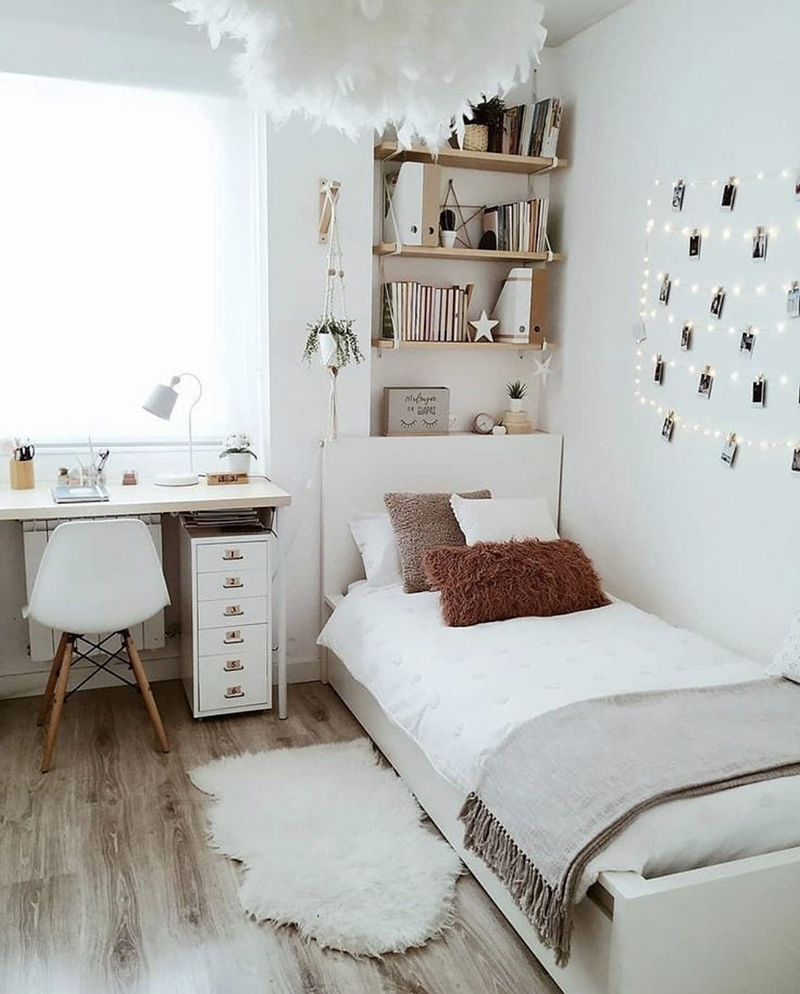 Thiết kế phòng ngủ 4m2 với tone màu trắng siêu xinh xắn và đáng yêu, chắc chắn sẽ khiến các cô gái không thể rời mắt