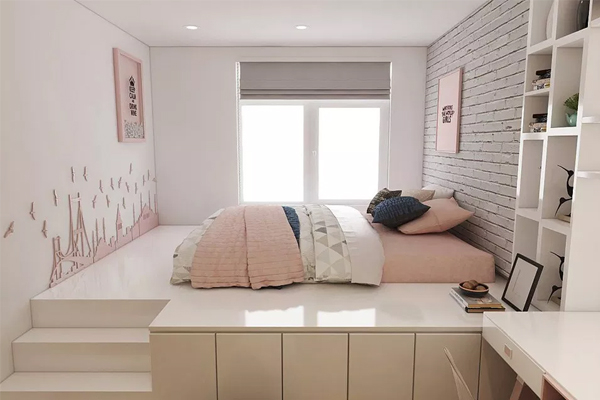Thiết kế nội thất cho phòng ngủ 2m2 tone màu trắng cực xinh xắn cho các “nàng thơ”, phù hợp với các cô nàng độc thân bận rộn