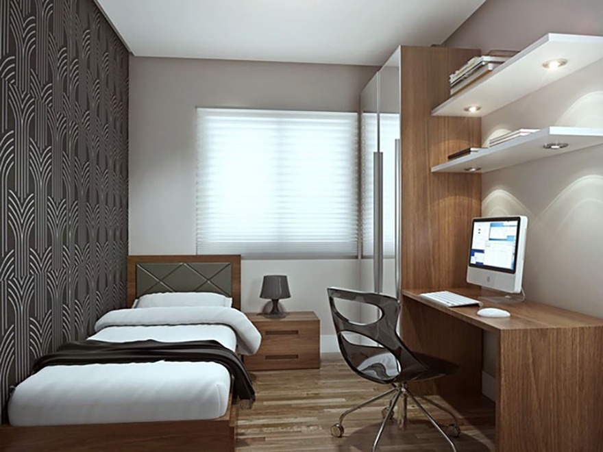 Đối với các căn phòng ngủ nhỏ, các bạn cũng cần lưu ý tạo tính đối xứng cho căn phòng của mình, điều này sẽ khiến cho căn phòng của bạn trở nên rộng rãi hơn, đồng thời việc tuân thủ nguyên tắc đối xứng cũng sẽ giúp tạo tính thẩm mỹ cao cho căn phòng của bạn.