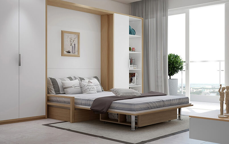Mẫu giường thông minh kết hợp sofa vô cùng tiện lợi, giúp nâng tầm cuộc sống của bạn Giường ngủ gấp kết hợp với tủ sách “2 trong 1”, vừa giúp bạn tối ưu diện tích, vừa đảm bảo tính thẩm mỹ cho căn phòng của bạn