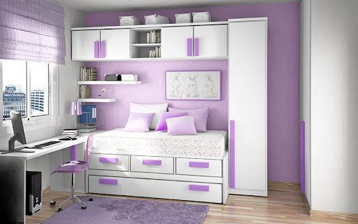 Thiết kế phòng ngủ kết hợp màu hồng trắng xinh xắn, khiến bạn như đang lạc vào khu vườn cổ tích, rất thích hợp với các bé gái và các bạn nữ. Tone màu tím khoai môn siêu lạ mắt, khiến cho phòng ngủ của bạn trở nên ngọt ngào và dễ thương.