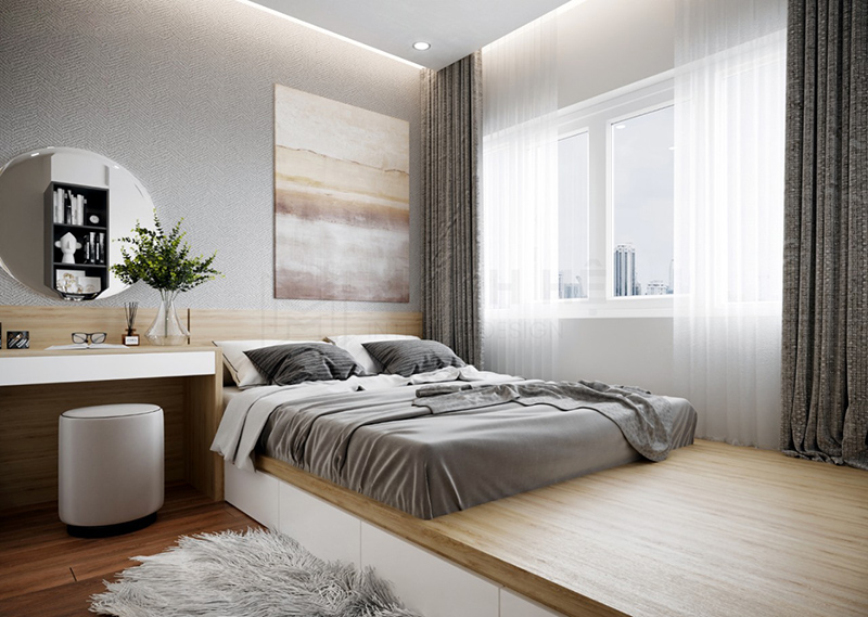 1.1.3. Phòng ngủ 2m2 với tone màu trắng be