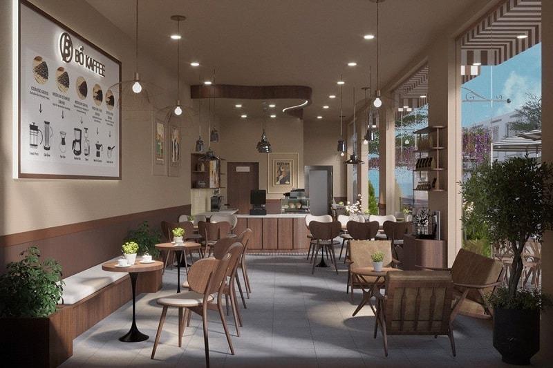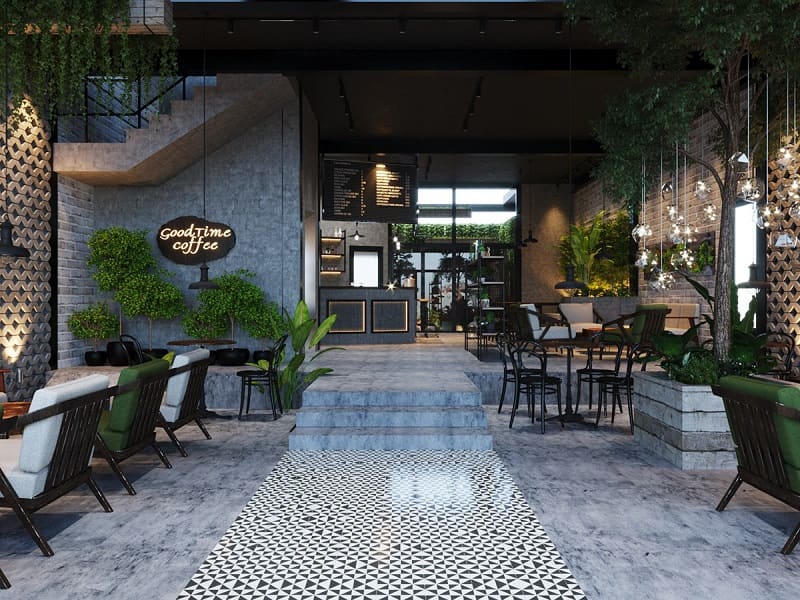 - 2.2 Thiết kế quán cafe cây xanh phong cách đơn giản