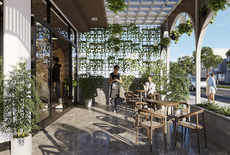 Cây xanh có khả năng hấp thụ nhiệt và giảm nhiệt độ không khí, giúp cho quán cafe luôn mát mẻ và dễ chịu. Không gian kinh doanh rộng rãi, thoải mái sẽ giúp khách hàng thư giãn và giải tỏa căng thẳng sau một ngày làm việc vất vả.