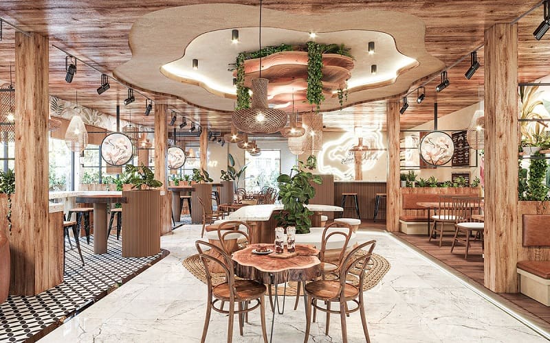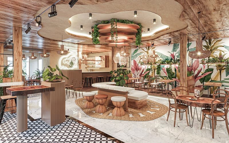 Thiết kế quán cafe cây xanh phong cách tropical