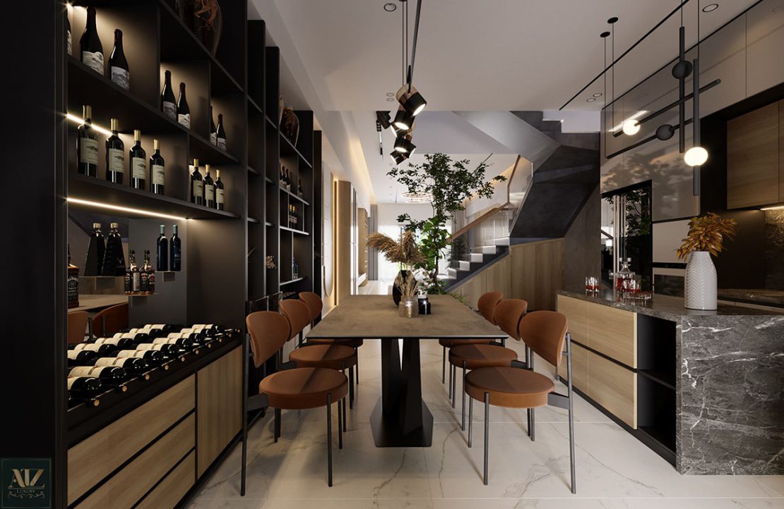 Kệ rượu chính là điểm nổi bật nhất của căn bếp.