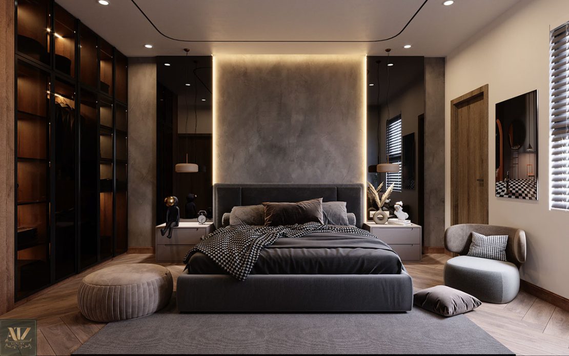 Phòng ngủ được thiết kế vô cùng ấn tượng nhưng phù hợp với sở thích của chủ nhân.