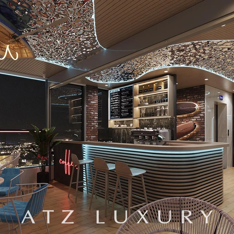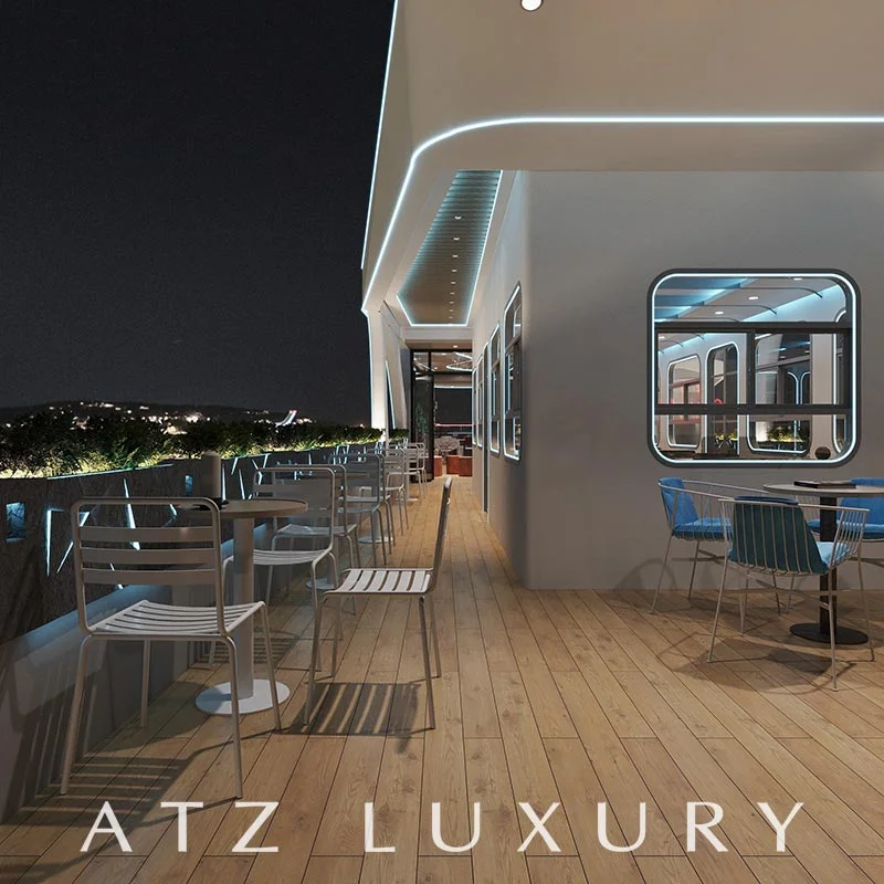 Tập trung thiết kế một khoảng không gian mang cảm giác “chill”, chú trọng sự thoáng đãng là ưu tiên hàng đầu của ATZ LUXURY. Với thiết kế quán cafe rooftop, khách hàng sẽ được trải nghiệm sự trong lành, thoáng đãng của không khí tự nhiên, đem lại cảm giác thư giãn, thoải mái, giải tỏa sự bức bí cho tâm hồn và cơ thể khi phải làm việc, sinh hoạt ở những khoảng không gian kín trong thời gian dài.