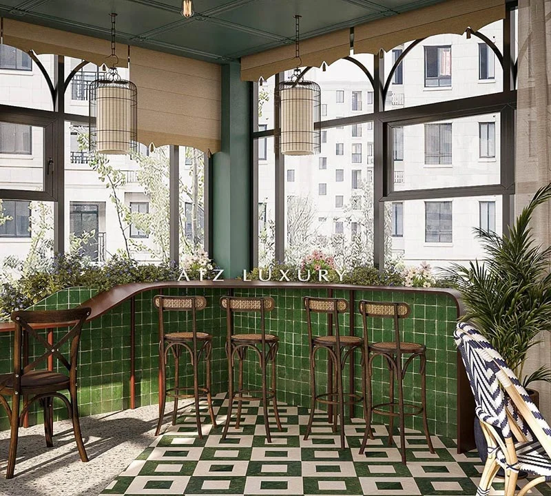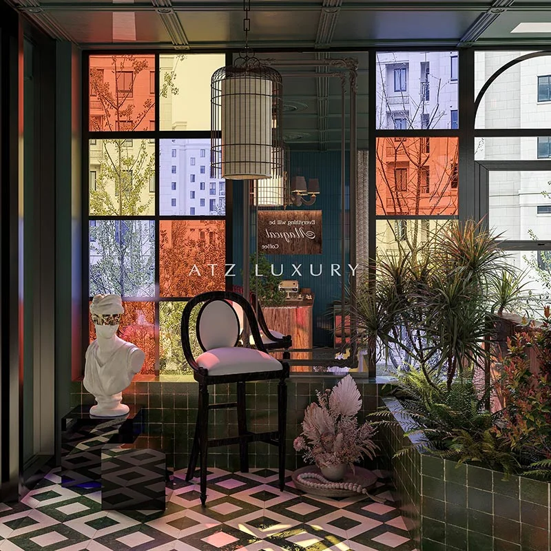 Hệ thống cửa ra vào, cửa kính đều được ATZ LUXURY ưu tiên sử dụng chất liệu kính. Khi đó, khoảng không gian quán cafe sẽ có cảm giác được mở rộng hơn, thoáng đãng hơn, hạn chế tối đa cảm giác bức bí, ngột ngạt từ những bức tường bê tông thông thường mang lại.