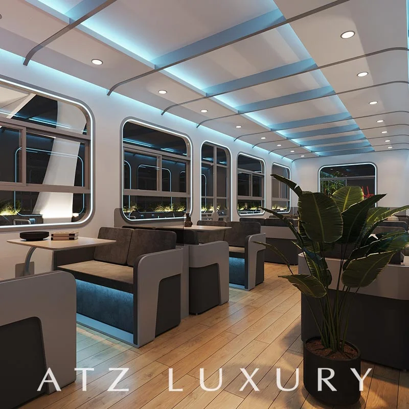 Để thể hiện hoàn hảo nét đặc trưng của du thuyền, đội ngũ thiết kế của ATZ LUXURY đưa ra ý tưởng thiết kế ghế ngồi bên cạnh những ô cửa sổ kính. Nhằm đem lại trải nghiệm chân thực nhất cho khách hàng.