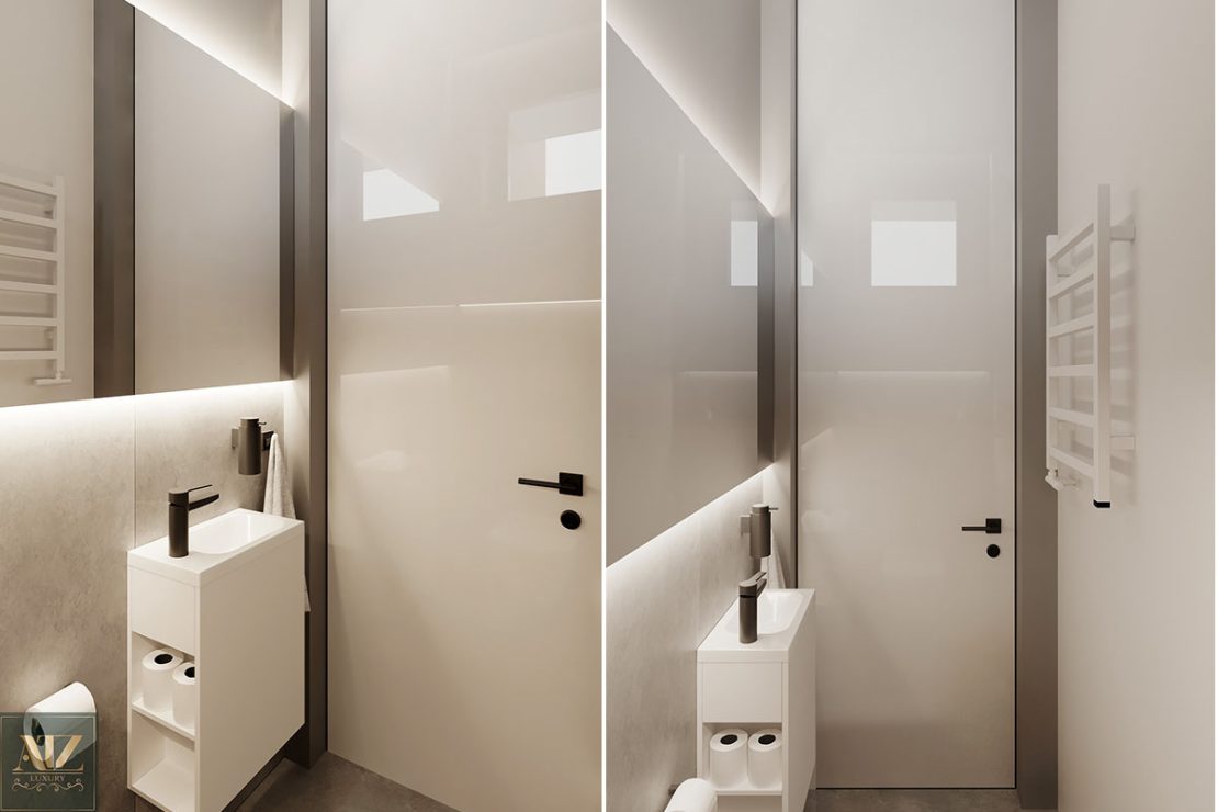 Sử dụng nốt phần không gian còn dư để làm nhà vệ sinh là một ý tưởng tuyệt vời từ kiến trúc sư. Khi cần sử dụng, các thành viên sẽ không cần di chuyển đến tầng 2, tầng 3 nữa, rất tiện ích!