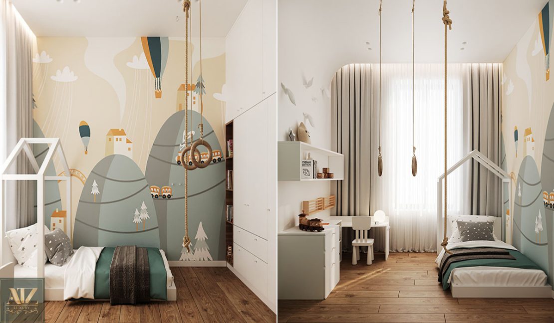 Một phòng ngủ khác dành cho bé gái trong gia đình. Vẫn là phong cách trẻ trung, năng động, căn phòng chắc chắn sẽ đem đến cho trẻ cảm giác thoải mái nhất khi sinh hoạt.