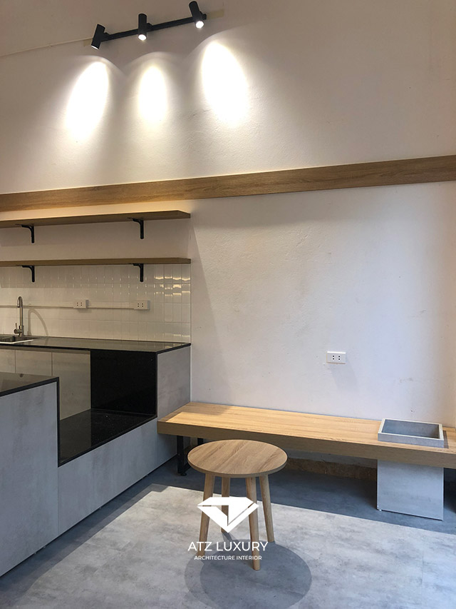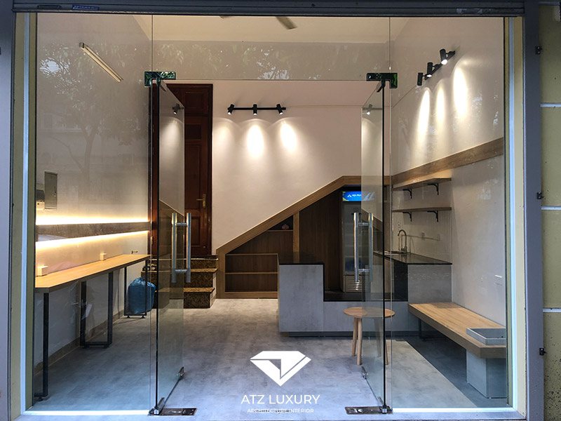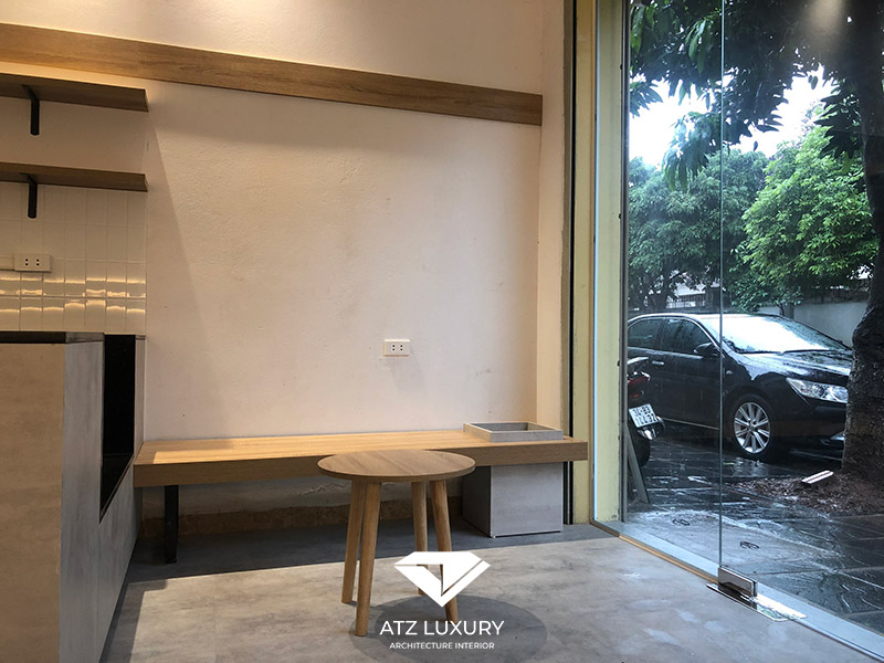 Với mong muốn không gian quán của chị Oanh, ATZ LUXURY đã triển khai phong cách thiết kế theo mẫu hiện đại, lựa chọn tone màu kết hợp giữa màu trắng chủ đạo và màu ghi xám, nâu gỗ pastel rất nhẹ nhàng, giúp cân bằng và làm dịu không gian, đồng thời cảm giác quán cà phê có chiều sâu hơn.
