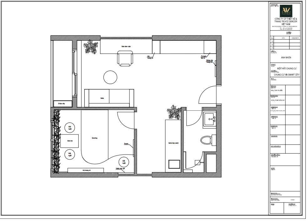 - Thiết kế nội thất căn hộ chung cư Vinhomes Smart City 43m2 1PN