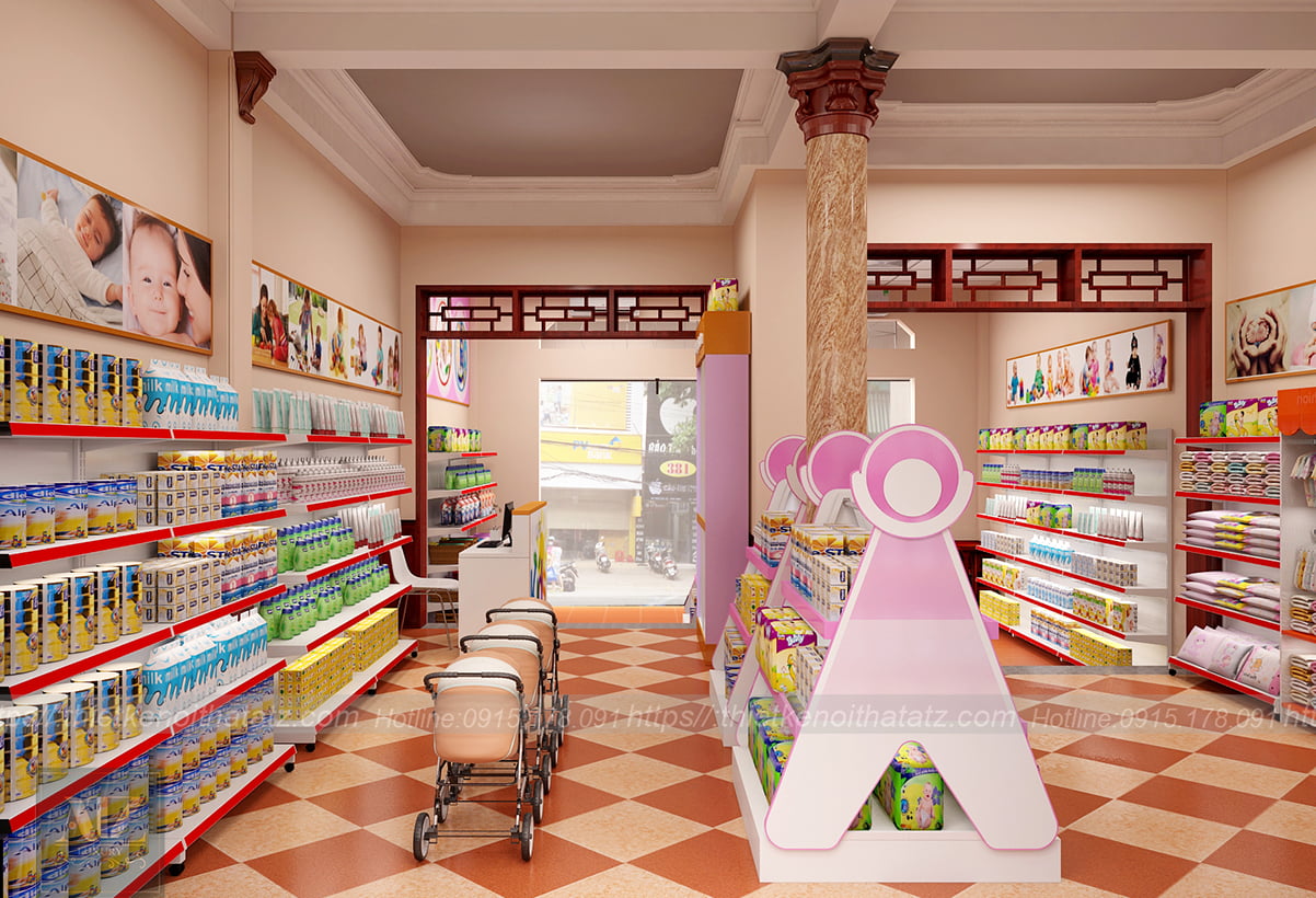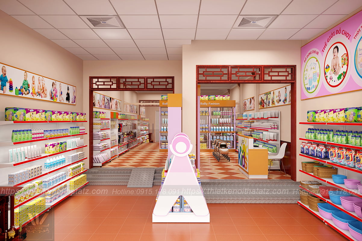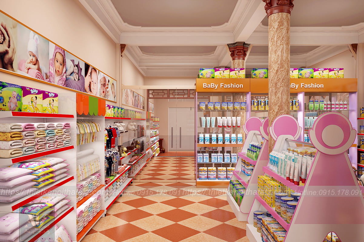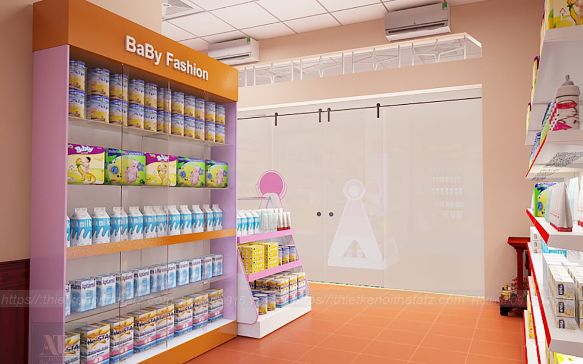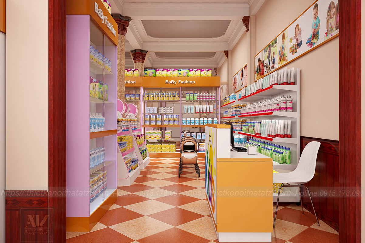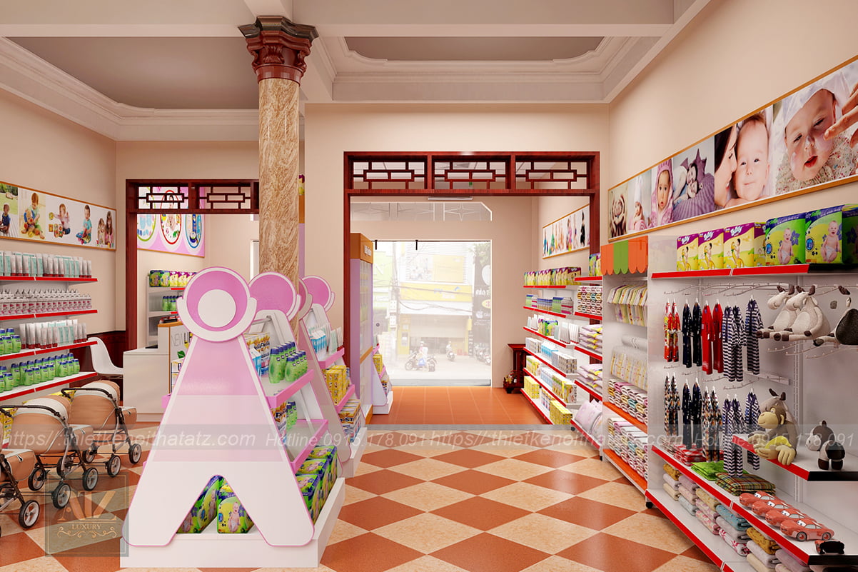 Hình ảnh mẫu thiết kế nội thất shop mẹ và bé Baby Fashion.