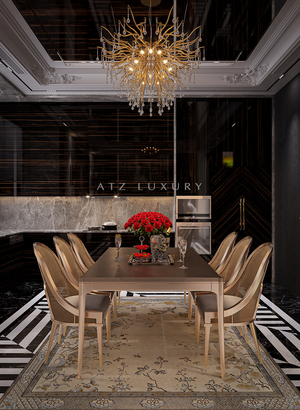 Khu vực bếp, bàn ăn được thiết kế đẹp đầy đủ công năng cũng như tiện ích trong sinh hoạt và sử dụng, với sự kết hợp độc đáo của các tone màu giúp cho không gian tổng quan được trở lên sang trọng và đẹp hơn rất nhiều.