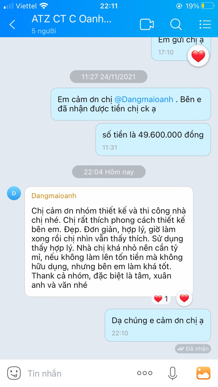 Đánh giá của chị Oanh về dịch vụ thiết kế nội thất ATZ LUXURY