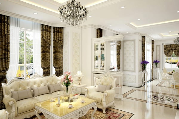 Thiết kế nội thất phòng khách tân cổ điển cho anh Thái