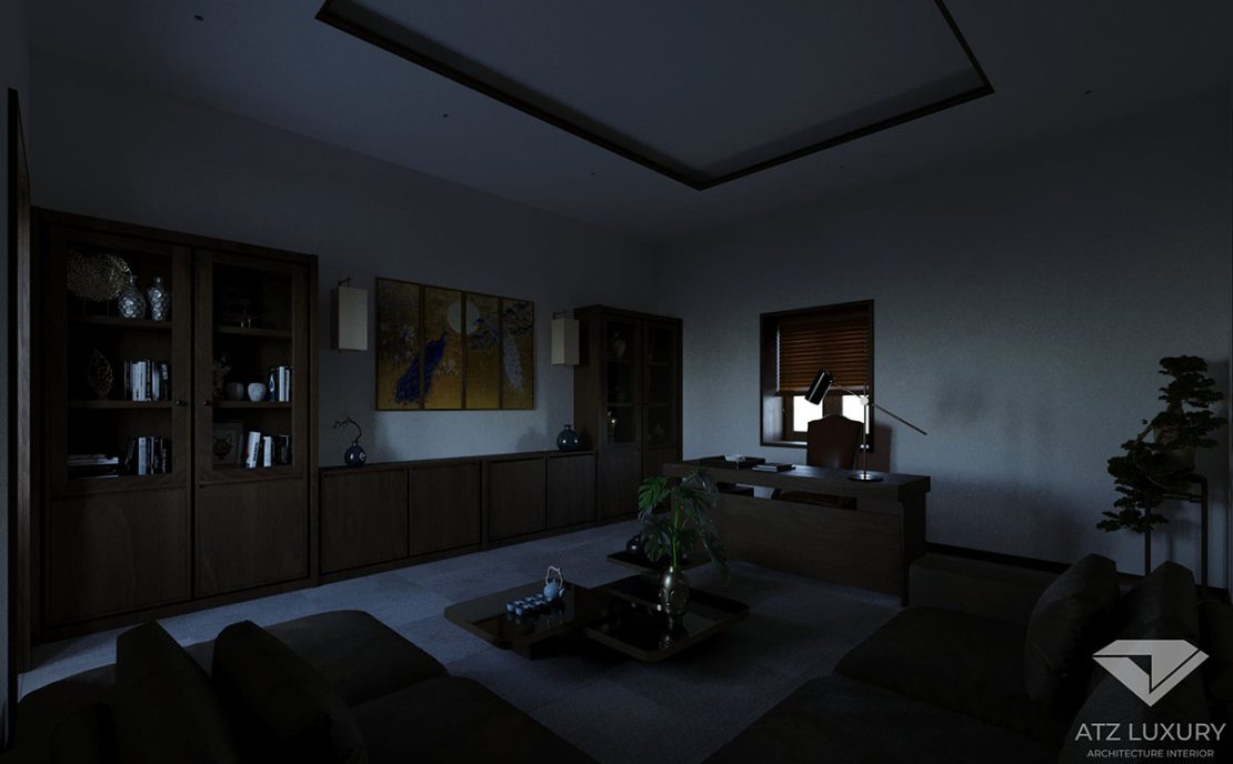 Để khách hàng có cái nhìn chi tiết, chúng tôi cũng đã lên phương án không gian phòng tiếp khách vào ban đêm.