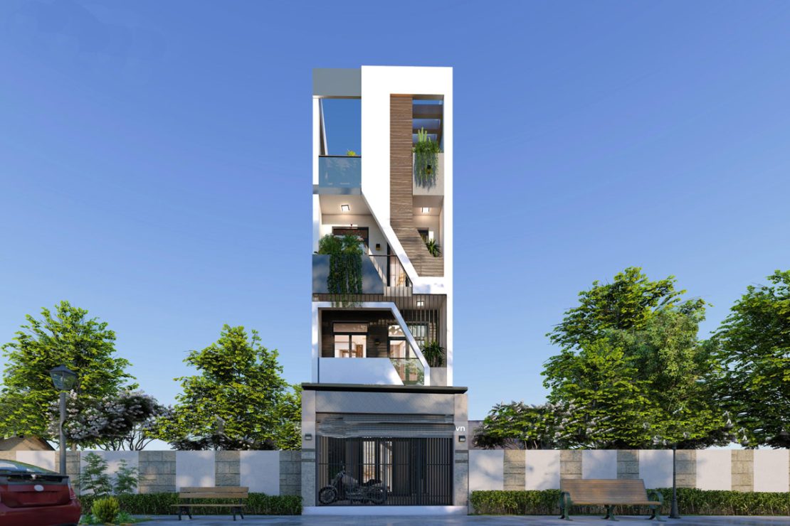 Nhà 4 tầng mặt tiền 5m là một trong những mẫu thiết kế đang “làm mưa làm gió” trên thị