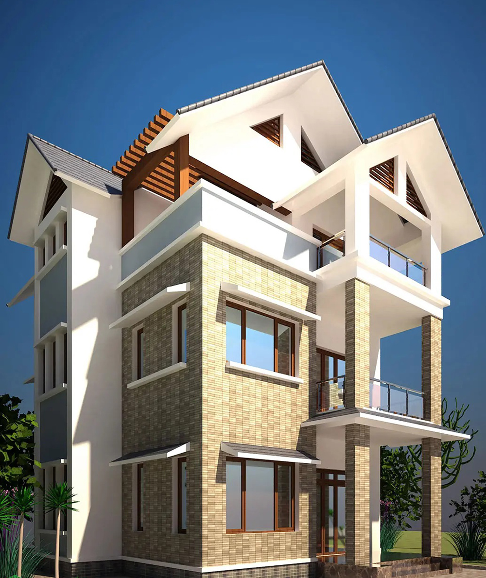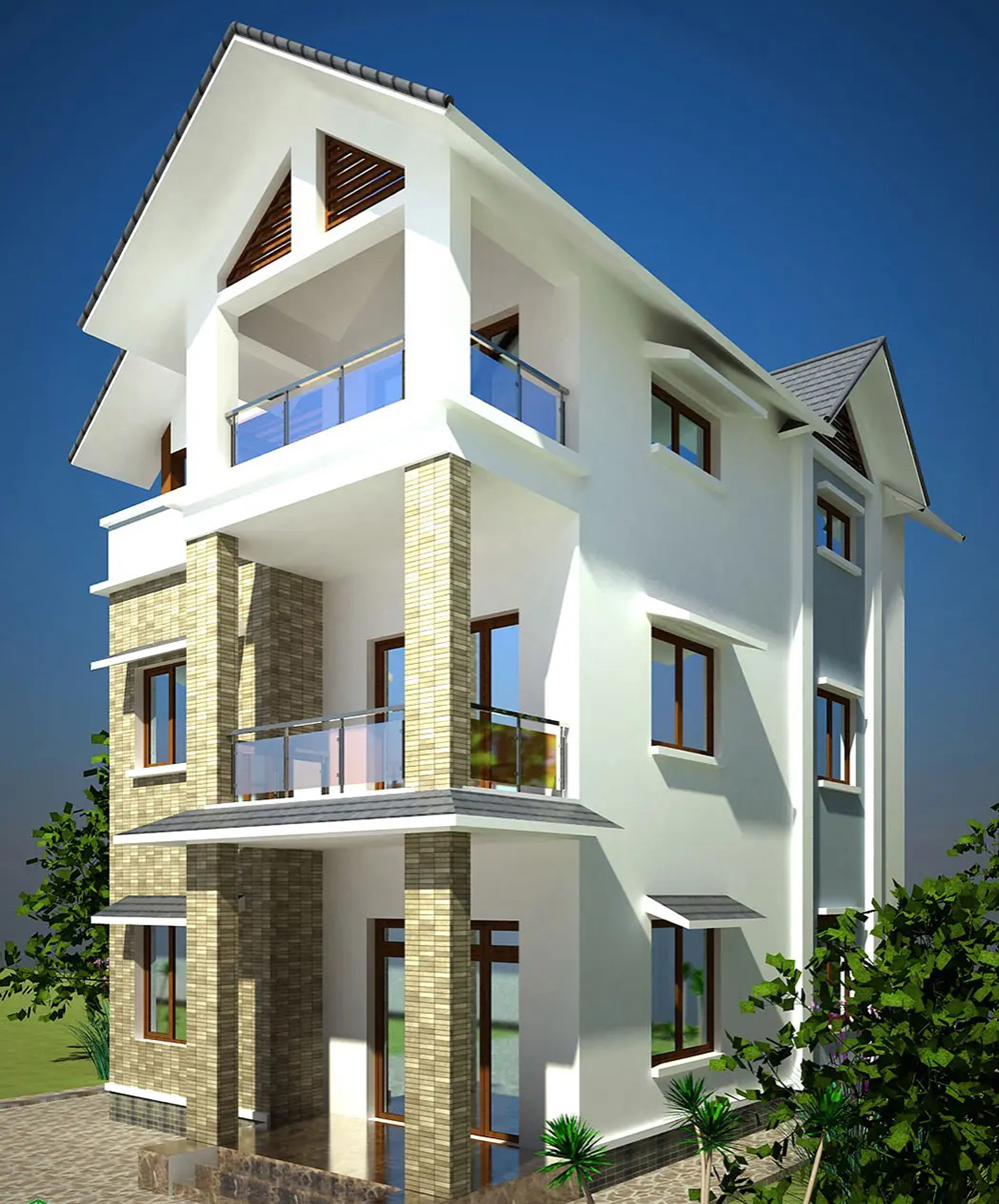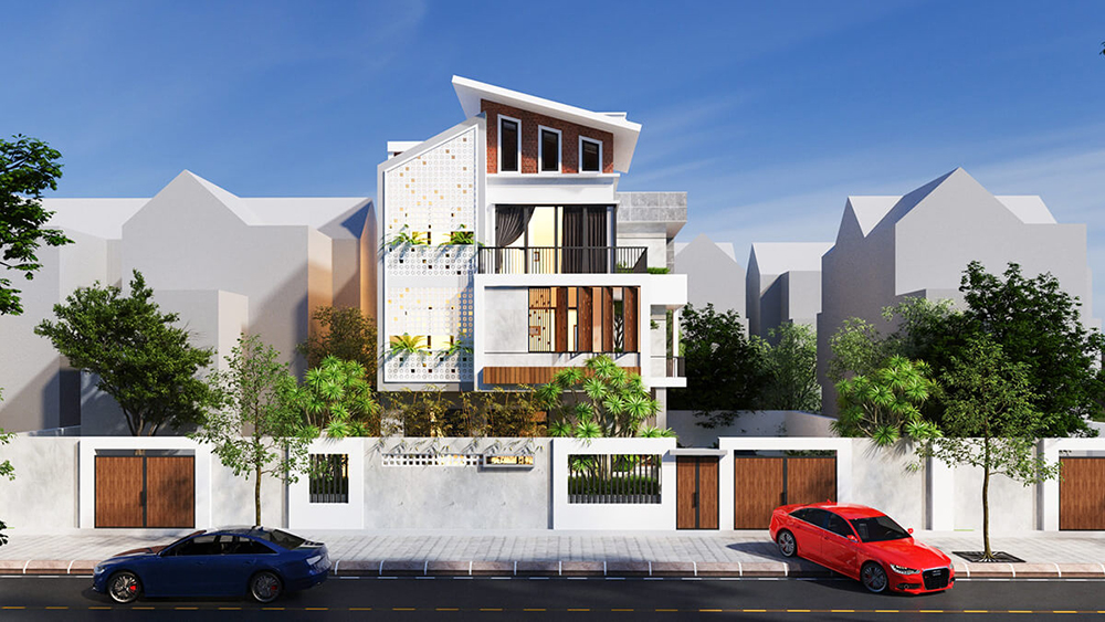 Mẫu thiết kế biệt thự 3 tầng 8x12m mái lệch
